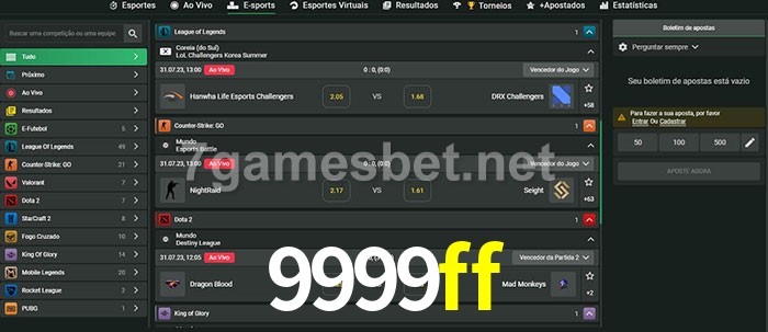 O 9999ff oferece uma grande seleção de opções de apostas em e-sports com probabilidades competitivas